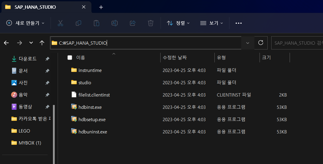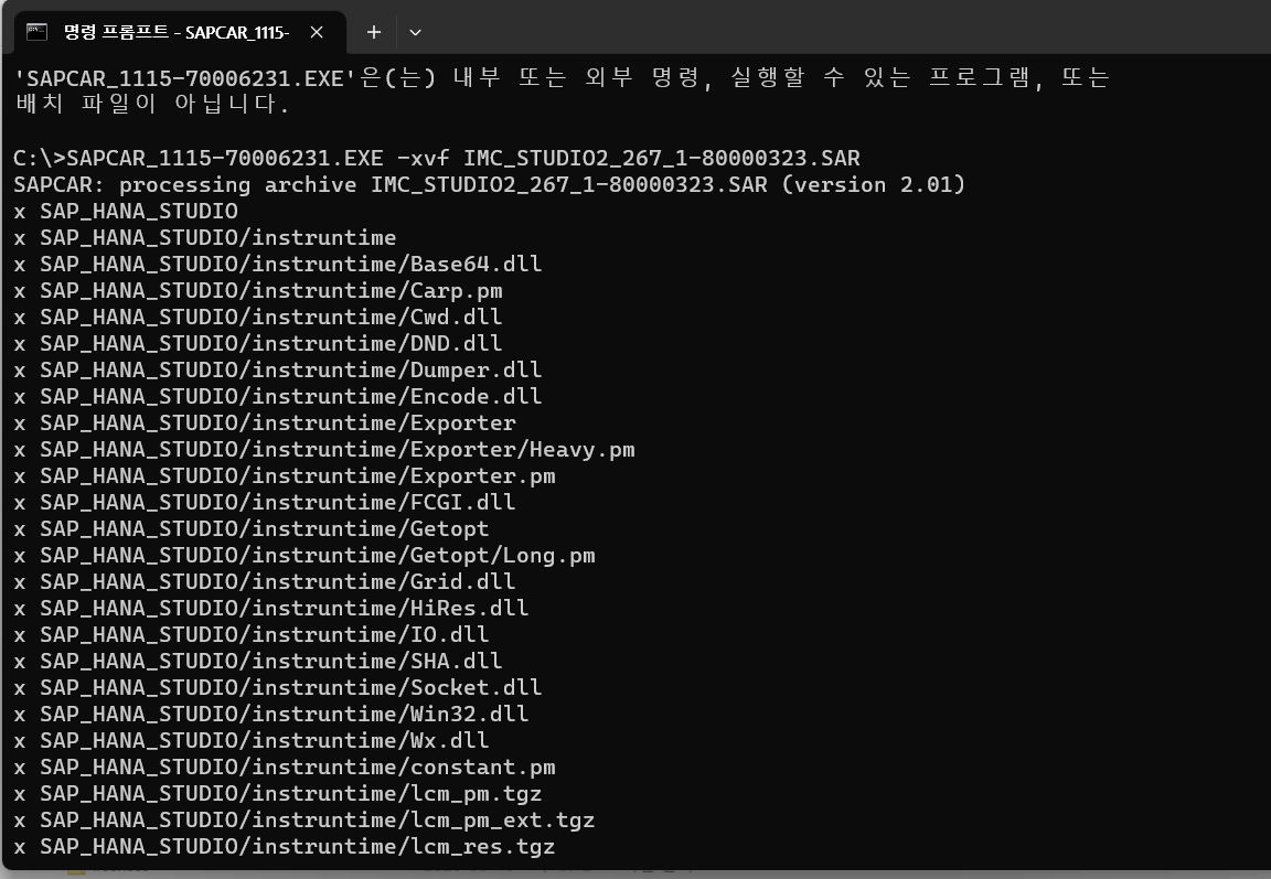 파일 동일 경로에 위치하고 압축해제 command : path>SAPCAR_XXX.exe -xvf IMC_STUDIO2_XXX.SAR
