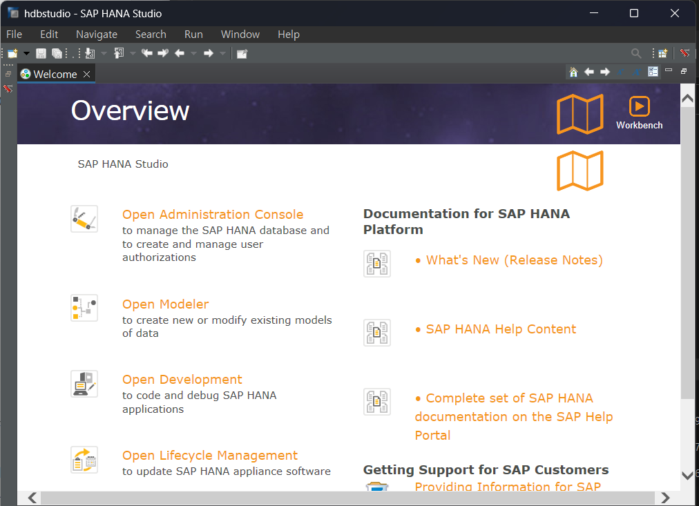 HANA Studio 가 설치되면 HANA 관련 tool 을 수행할 수 있는 상태로 eclipse + plug in 이 설치된다.