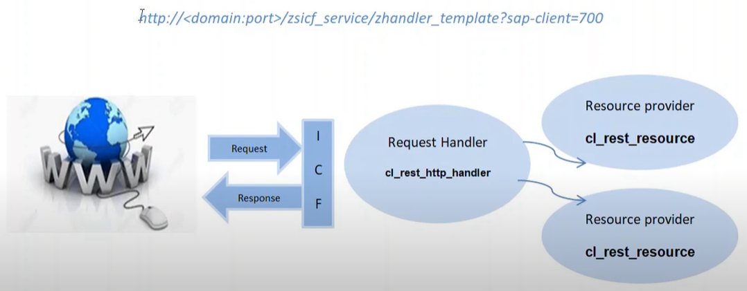 개요 WWW -> Request -> ICF -> Request Handler : cl_rest_http_handler -> Resource provider : cl_rest_resource -> Response 웹에서 ABAP REST API 를 호출하여 SAP 웹서비스를 제공
