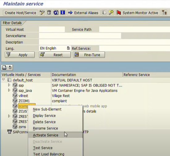 SICF 서비스 생성 및 active